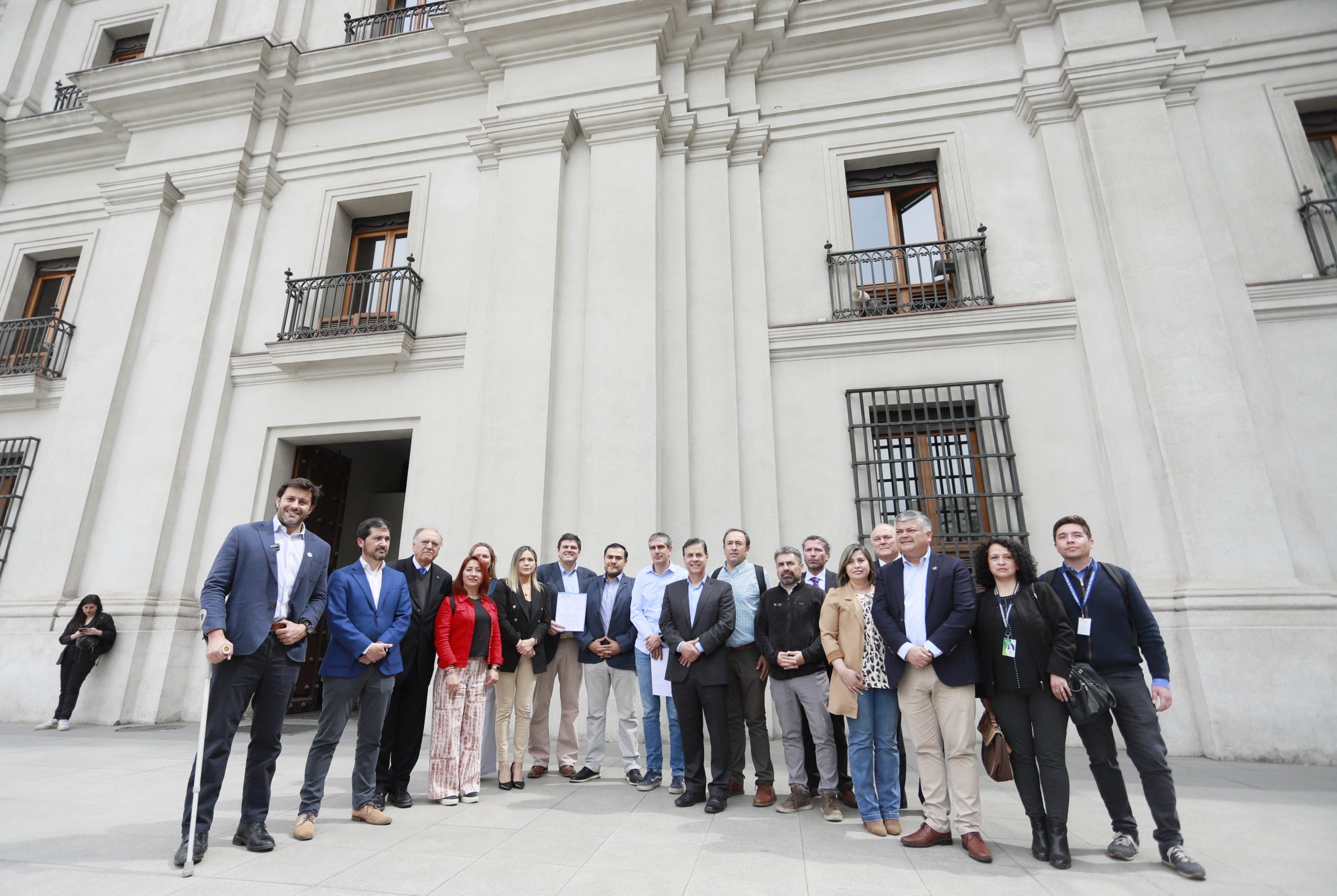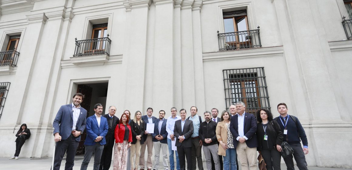 Un grupo de alcaldes de la Asociación de Municipalidades de Chile, encabezados por el Presidente de la entidad, el alcalde de Zapallar, Gustavo Alessandri, llegaron esta mañana hasta La Moneda junto a parlamentarios y asociaciones de funcionarios de la educación municipal para entregar una carta al Presidente Boric.