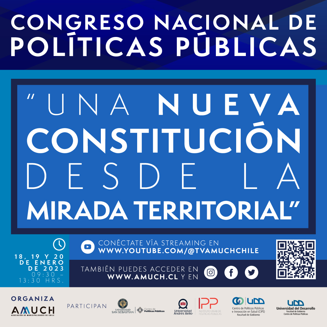 Durante los días 18, 19 y 20 de enero se realizará el primer Congreso de Políticas Públicas: “Una nueva Constitución desde la mirada territorial”, organizado por la Asociación de Municipalidades de Chile, en conjunto las Universidades, Del Desarrollo, San Sebastián y Andrés Bello.