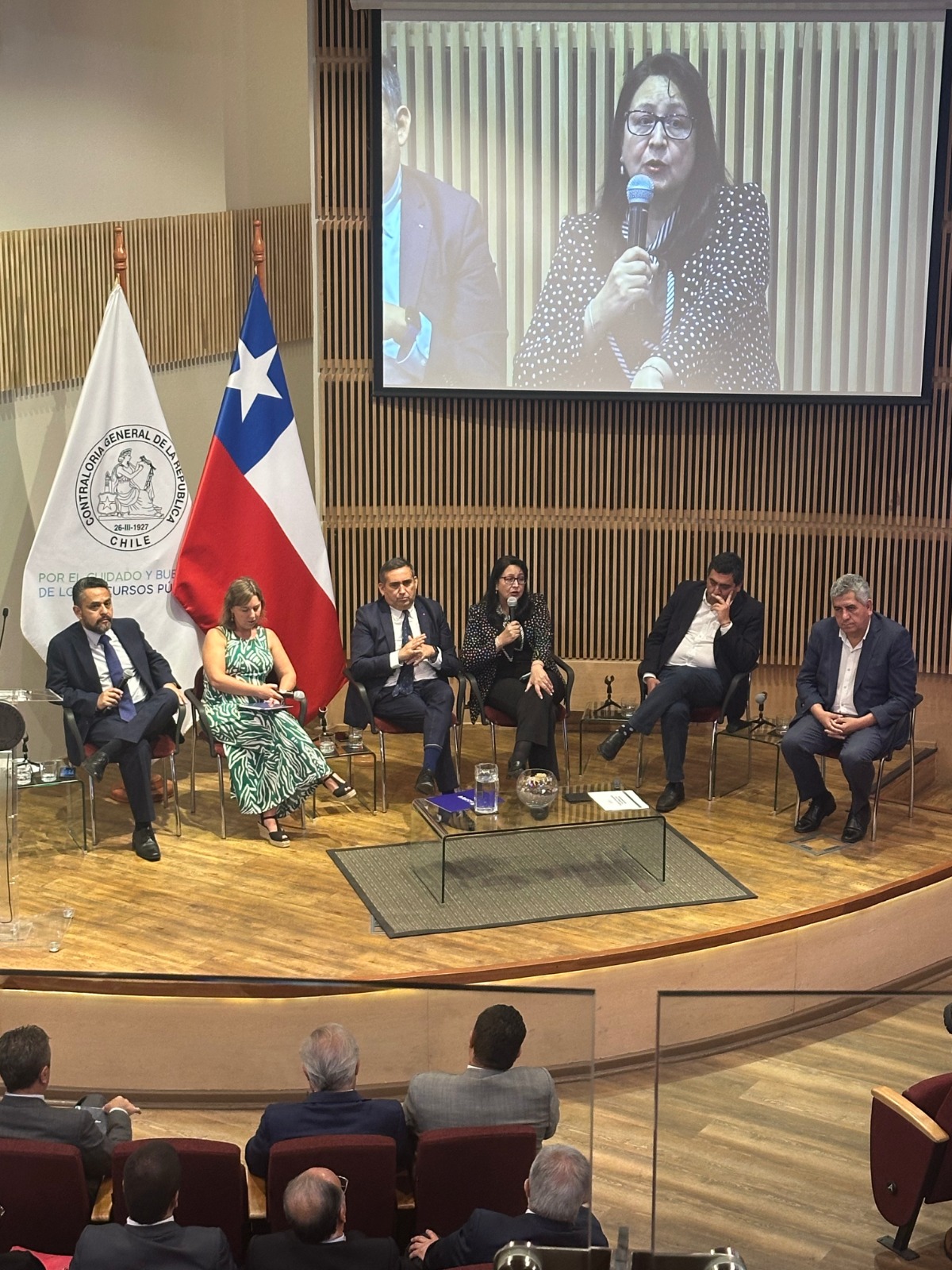 En el simposio compartió panel con Dorothy Pérez Gutiérrez, Contralora General de la República, María Jaraquemada Herrera, Consejera del Consejo para la Transparencia, Andrés Santander Ortega, Secretario Ejecutivo de ACHM y Pedro García M, Secretario de AGORECHI.