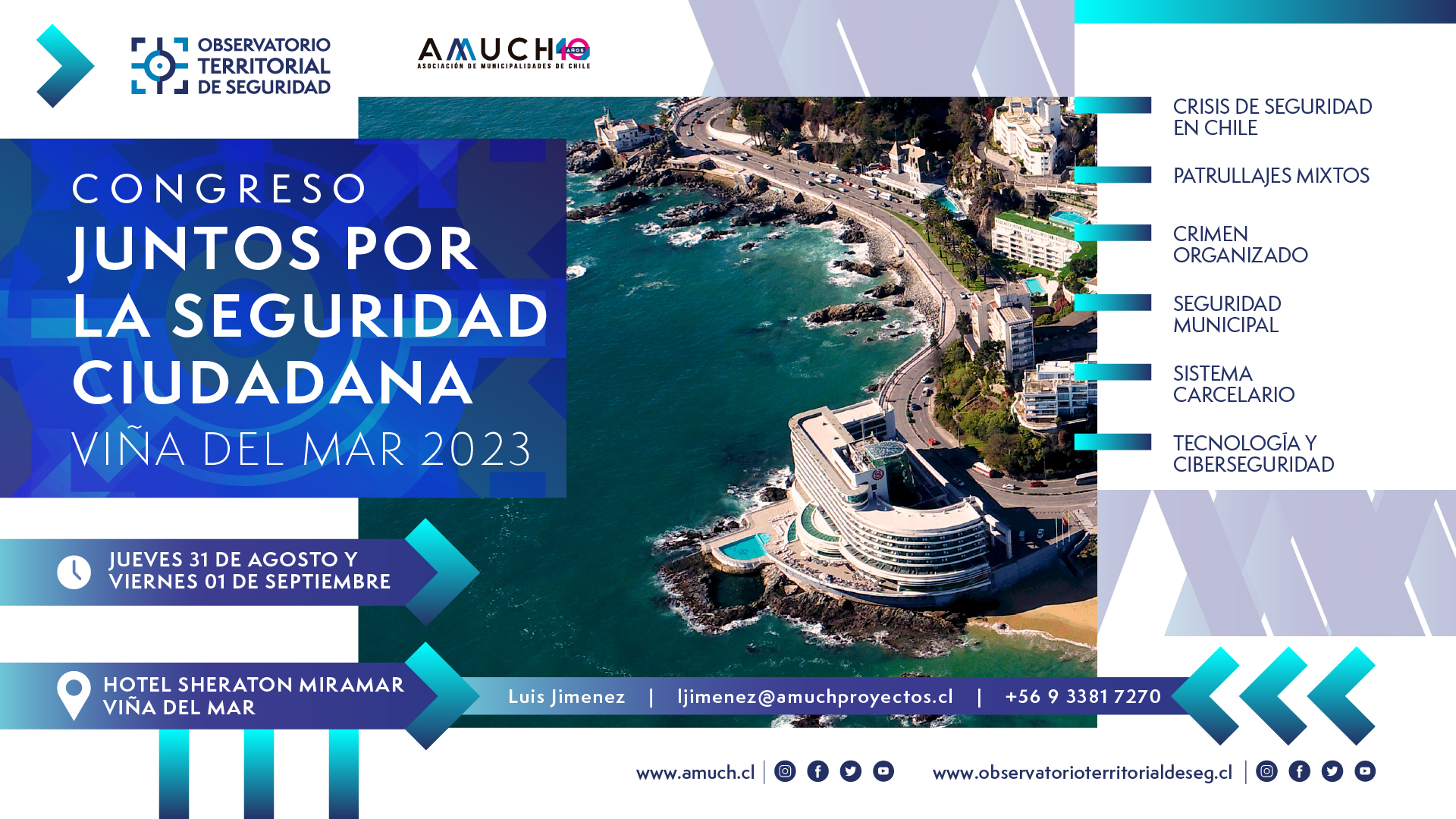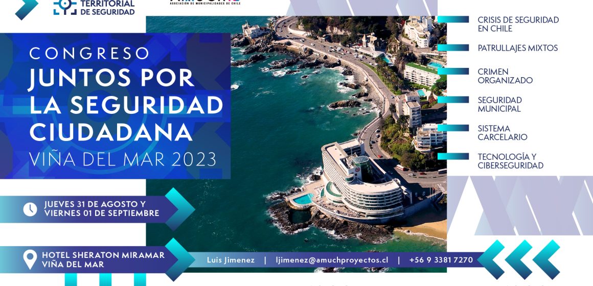 Este jueves 31 de agosto y viernes 1 de septiembre se realizará el congreso “Juntos por la Seguridad Ciudadana”, organizado por la Asociación de Municipalidades de Chile AMUCH, a través del Observatorio Territorial de Seguridad.